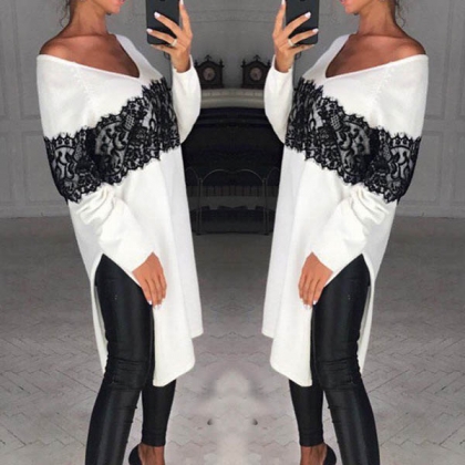 You can maintain your chic and unique style with this dress. Its v-neck,slit hem and lace spliced design