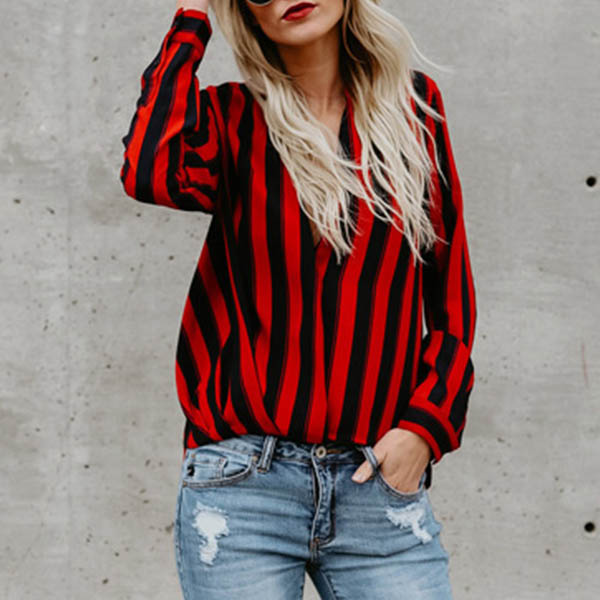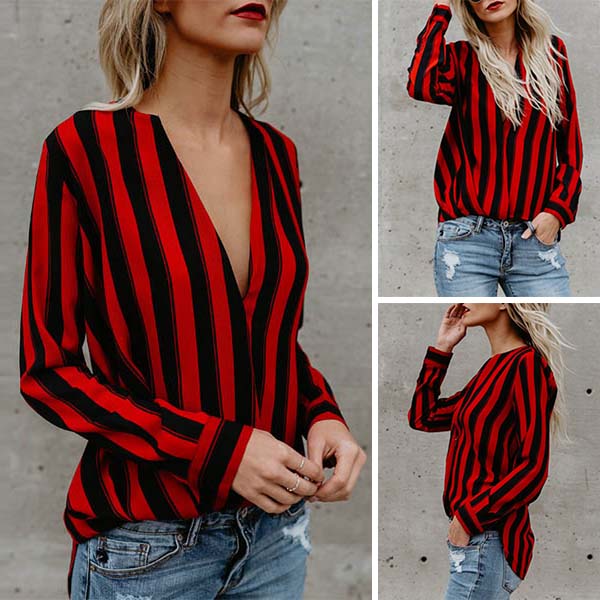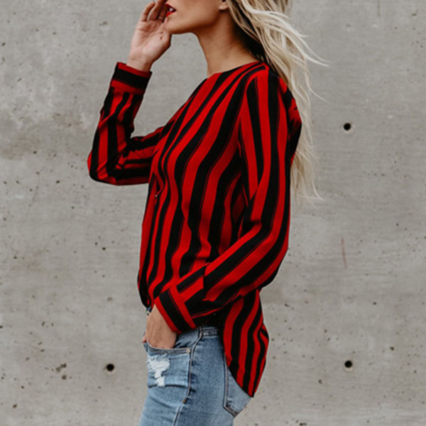 I promise you that this striped blouse would arouse your interest. Striped element design makes it will not
