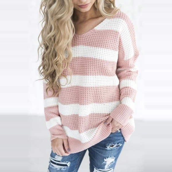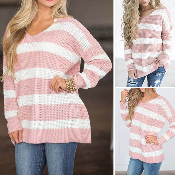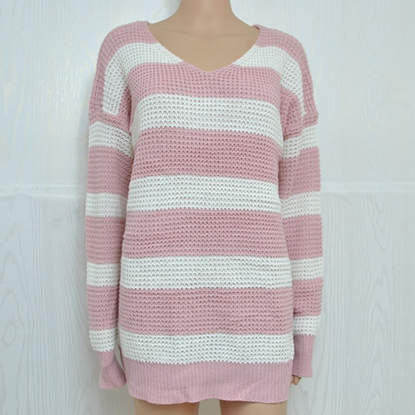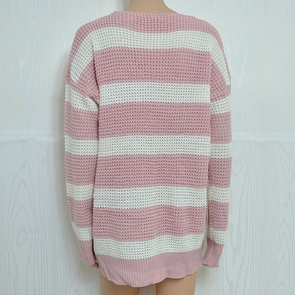 v-neck and a loose silhouette,simple yet cozy. The striped element design makes this piece look not so