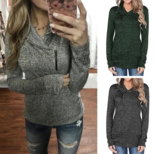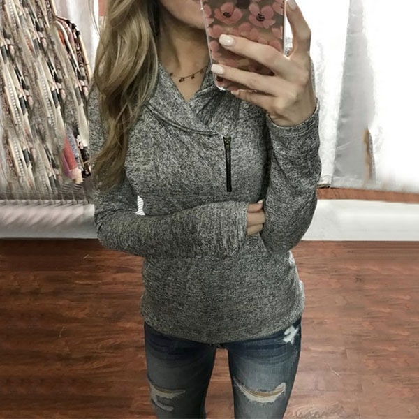 with long sleeve,zipper v-neck,hooded and front pocket design, chic, casual and fashion.