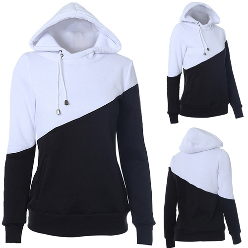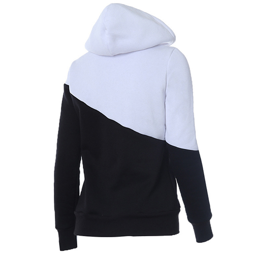 This hoodie is designed with long sleeves and it is also styled with a colorblocked design, which make it look fashion and stylish.