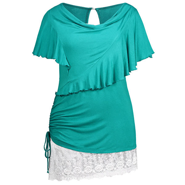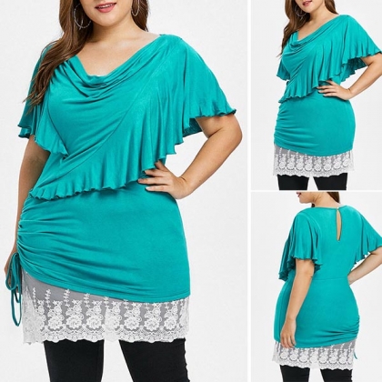 you a comfortable day,while the lotus sleeve,cowl neck and lace spliced hem design make this piece look so