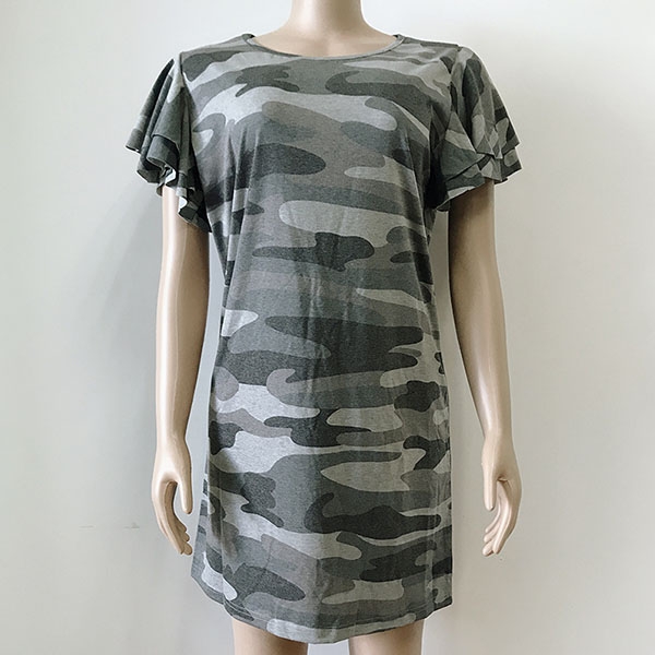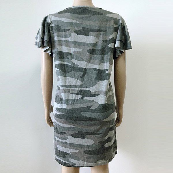 This dress is designed with chic and stylish camouflage details,the lotus sleeve design makes this