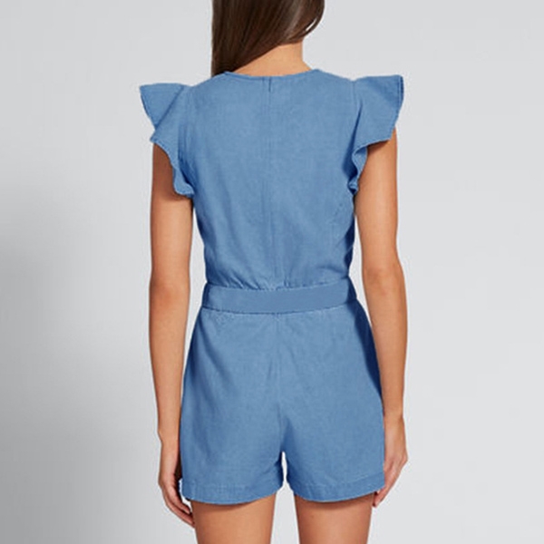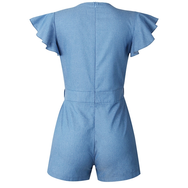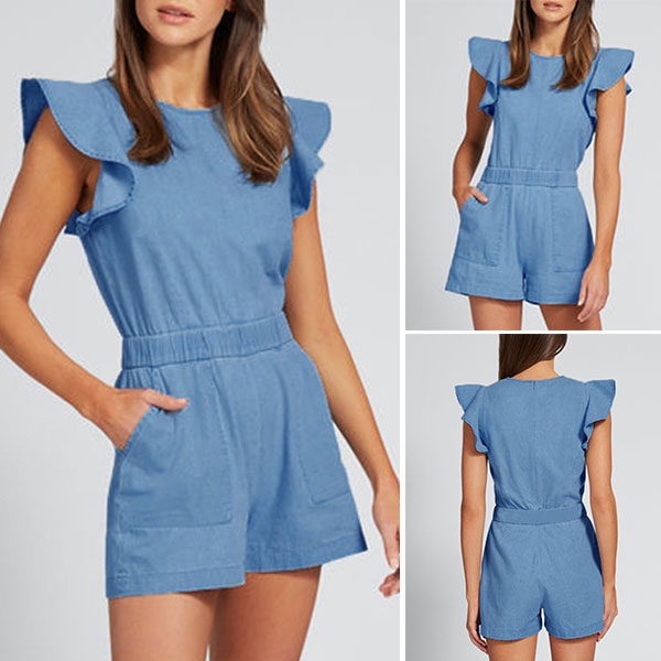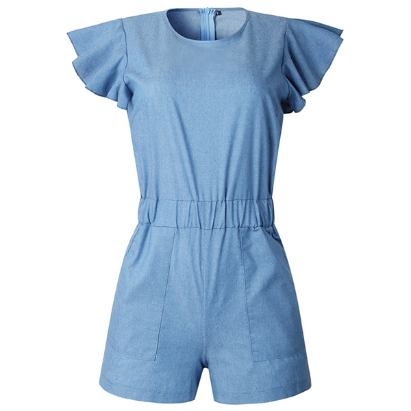 On your lazy days,you can slip into this denim romper for an effortless charming look. The lotus sleeve