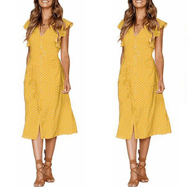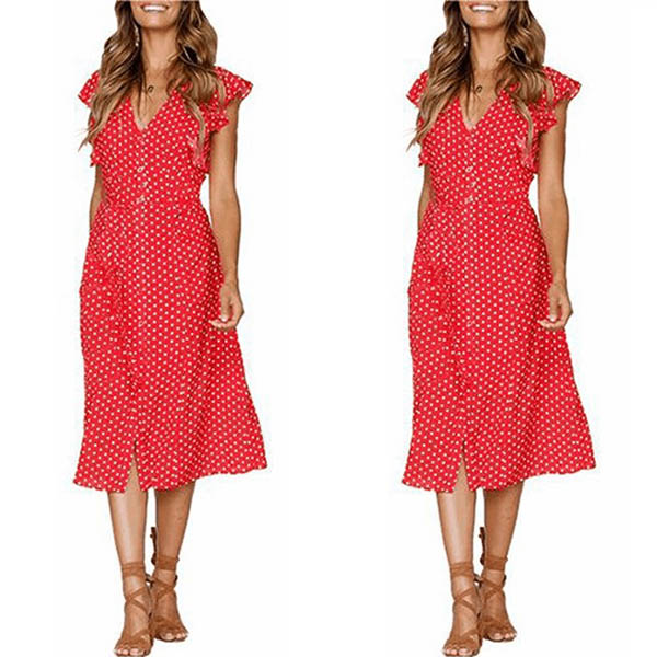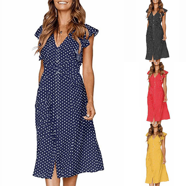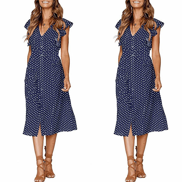 dress in your team. The dots printed design makes this piece look so stylish and playful,while the lotus sleeve,
