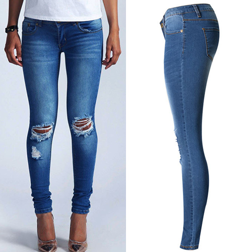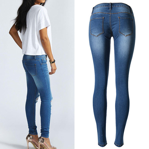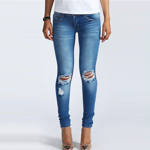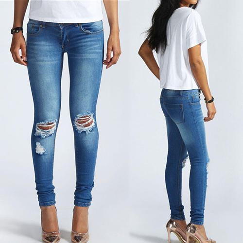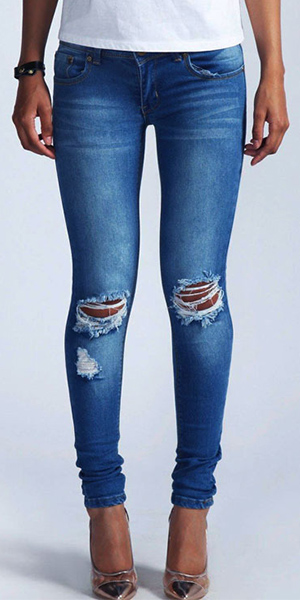 Crafted from super soft and stretchable material, with ripped and low rise design, this jeans would provide