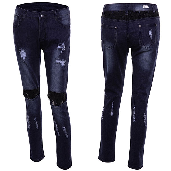 Make your wardrobe more complete by adding this jeans. The low-waist,lace spliced and ripped details