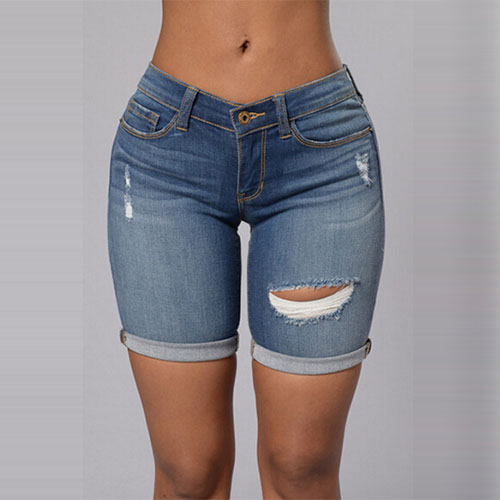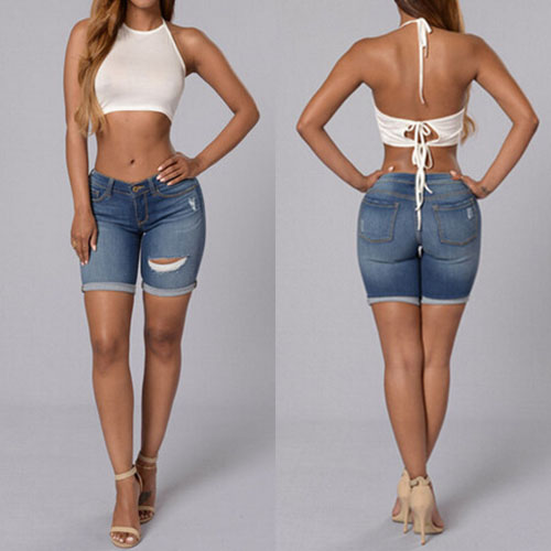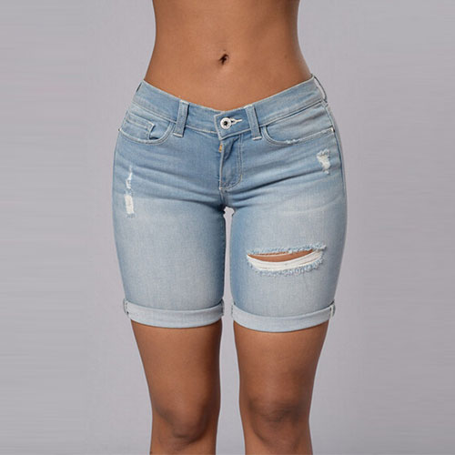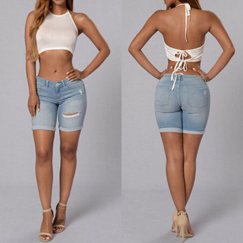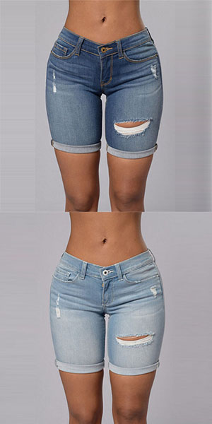 denim piece such as this shorts to welcome the summer. Its faded style with ripped design lends you a