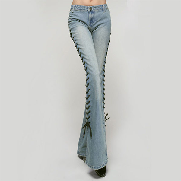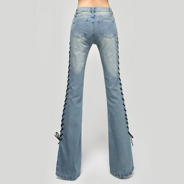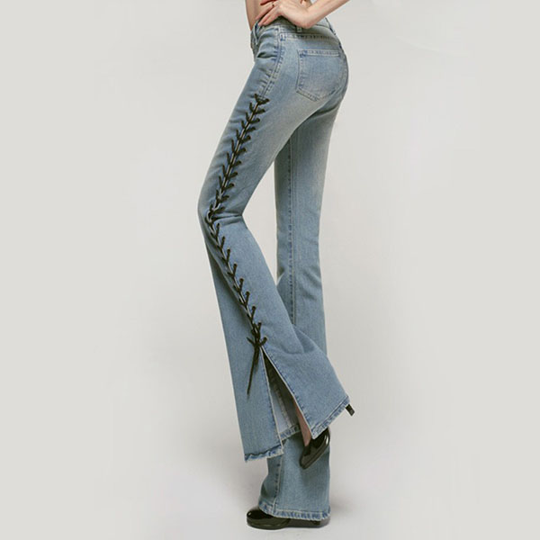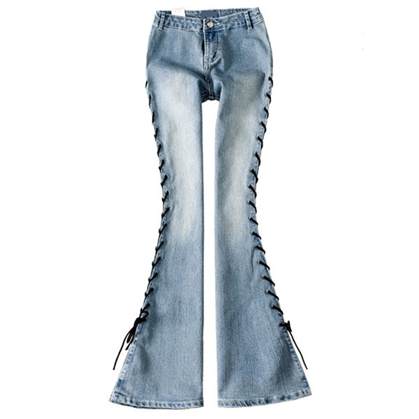 sexy designs like low-waist,flared hem with slit design,and its lace-up design on both side make this piece so distinctive and