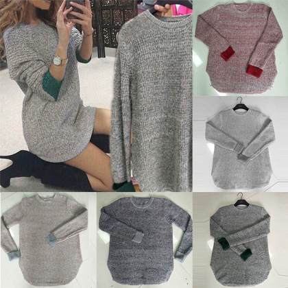 Fashion Mixed Color Long Sleeve Round Neck Sweater