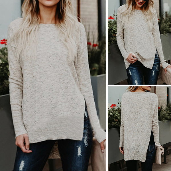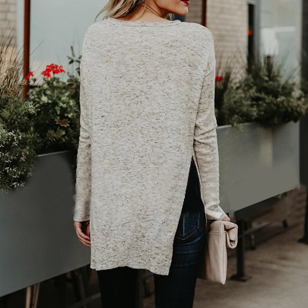 Fashion Mixed Color Long Sleeve Slit High-low Hem Sweater
