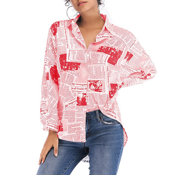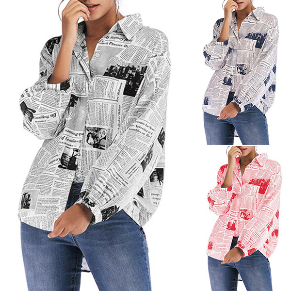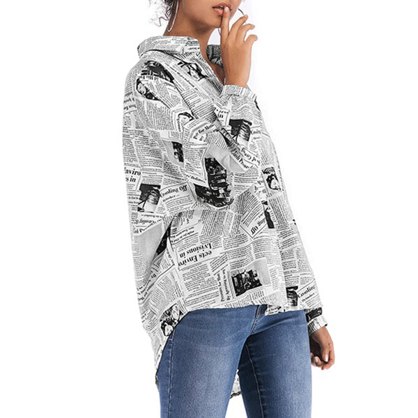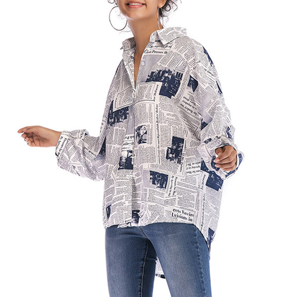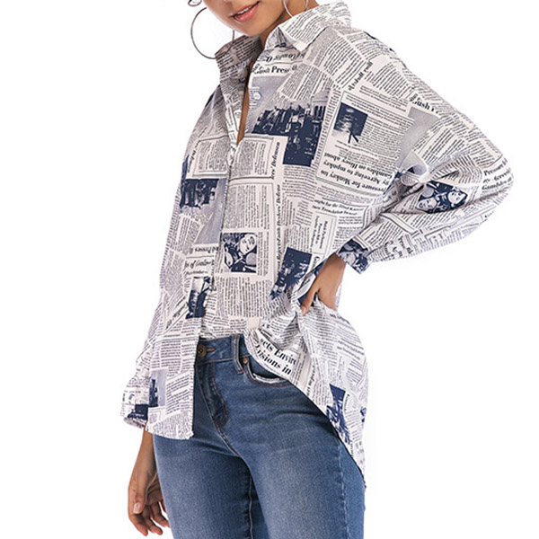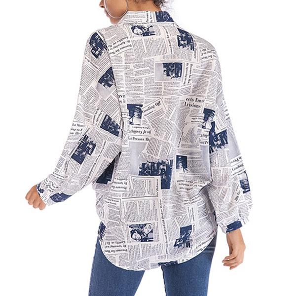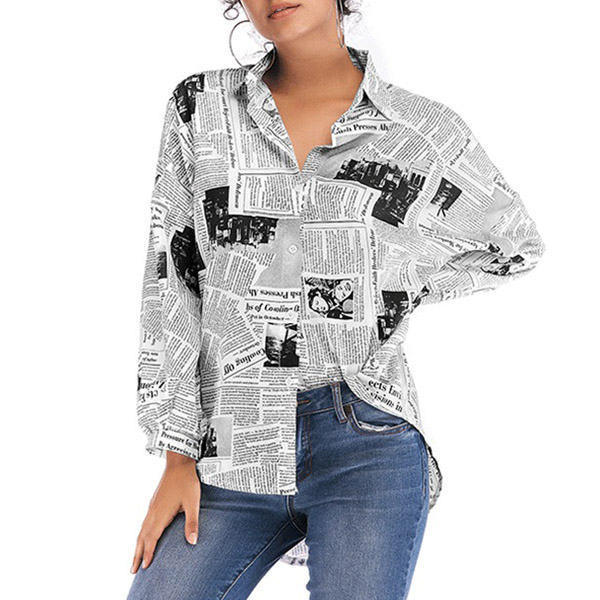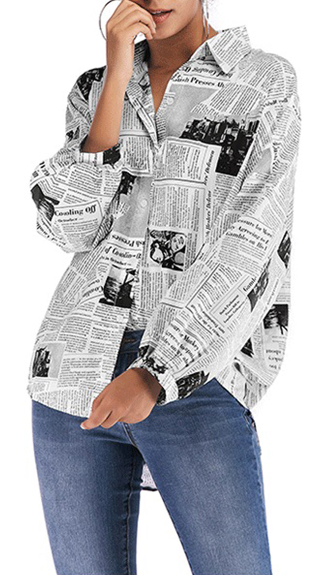 The newspaper printed details make this shirt look so chic an unique. Finished with long sleeve,