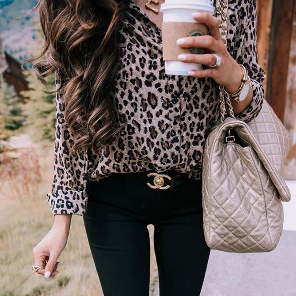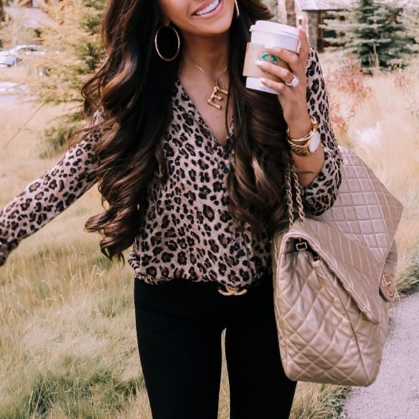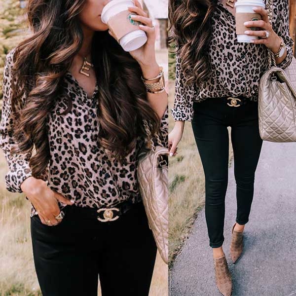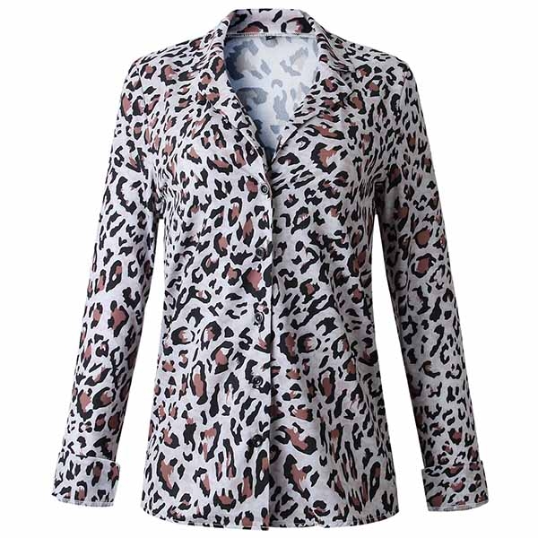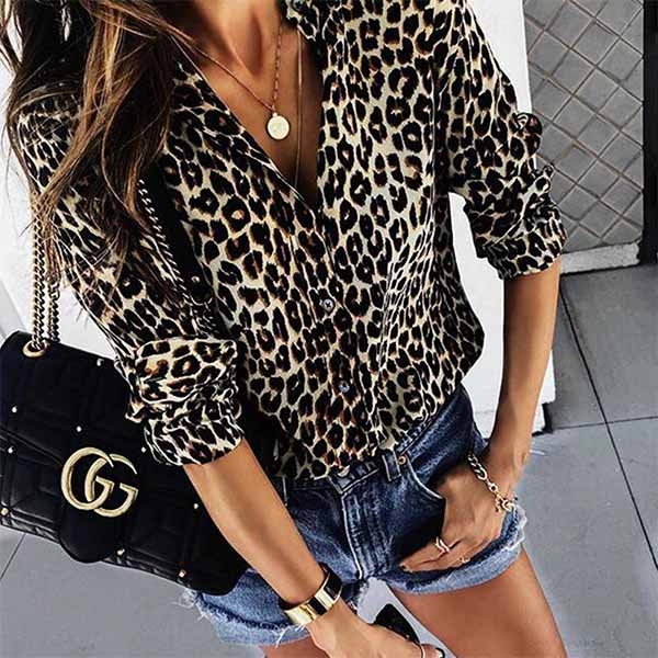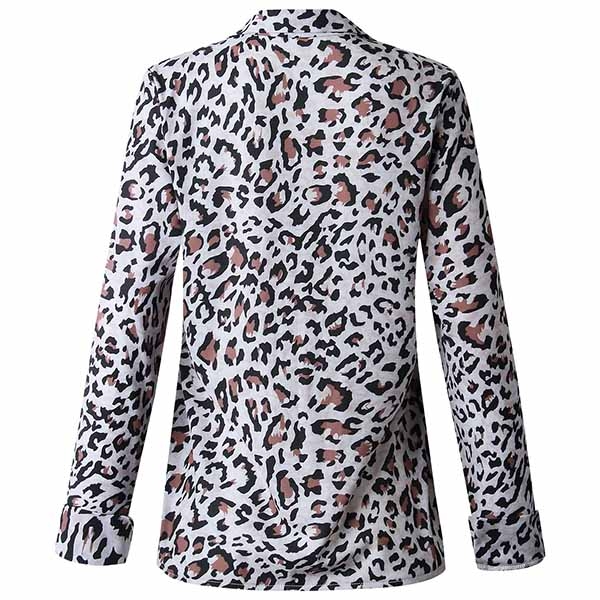 Adopting a smooth and soft fabric, this blouse feature a loose fit with allover leopard print,