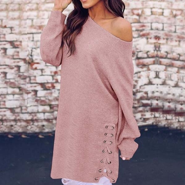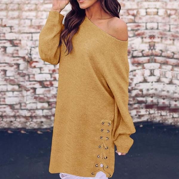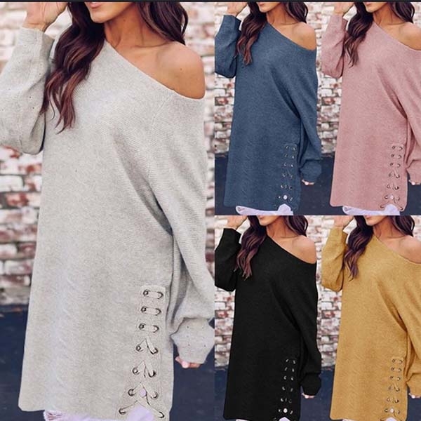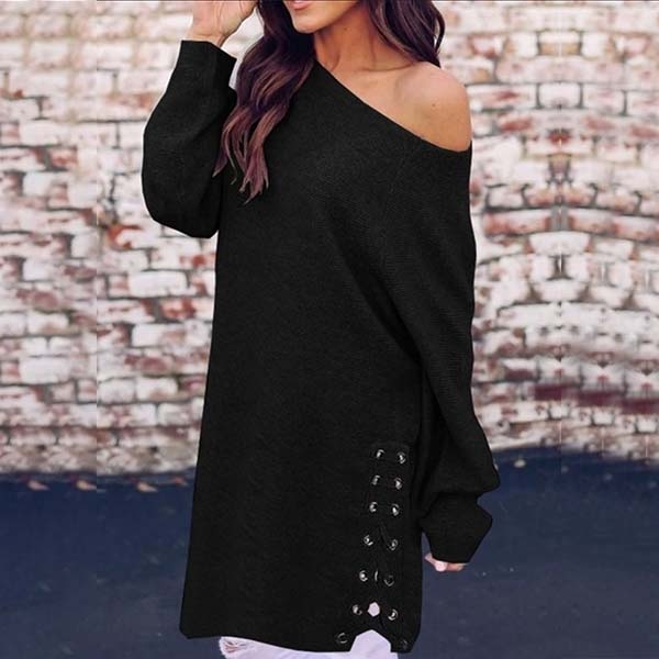 Solid color style,the oblique shoulder and side lace-up design make this piece look so chic and attractive.