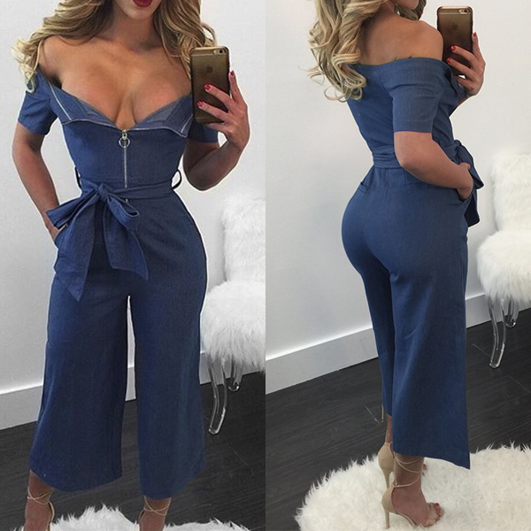 Let us enter into the jumpsuit: The off-shoulder wide neckline can show your sexy and charming shoulder.