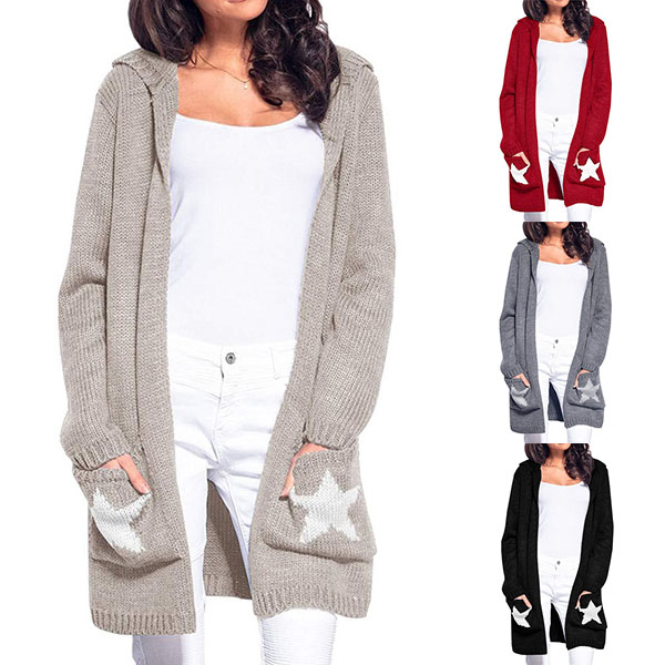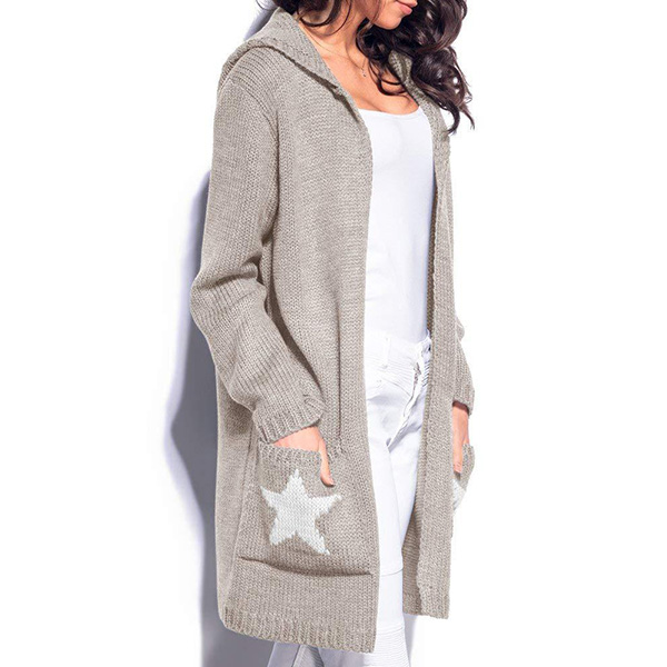 Hey,girls,you can greet the chilly autumn and winter with this knit cardigan. The pentagram pattern design