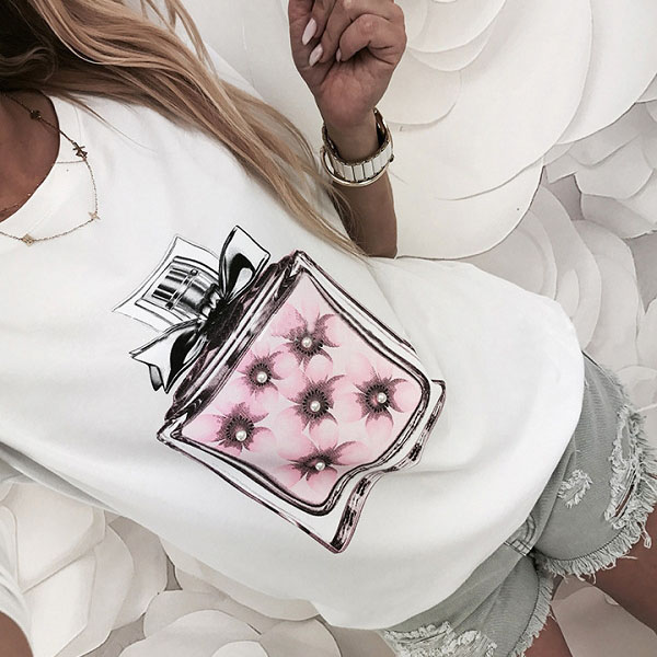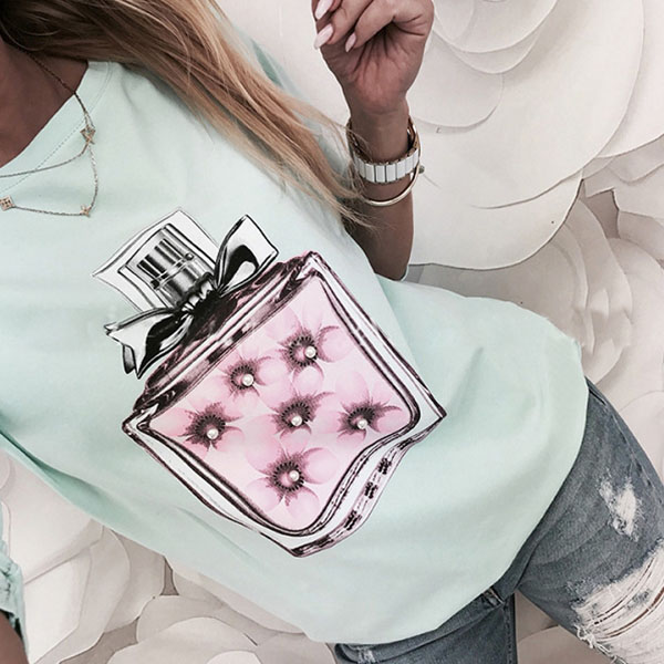 breathable fabric can ensure you a comfortable day,while the perfume bottle printed pattern design