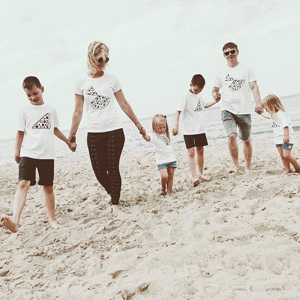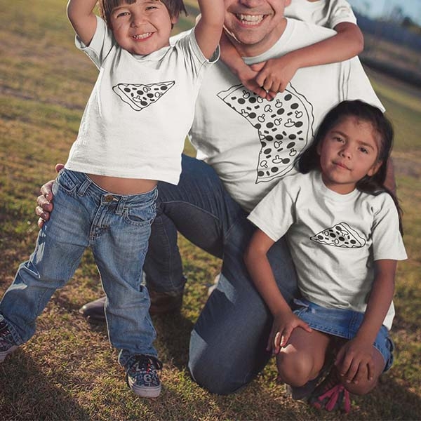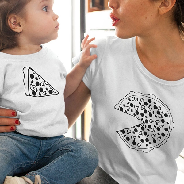 This parent-child T-shirt is a good chance to witness your happy family lift. The pizza printed pattern