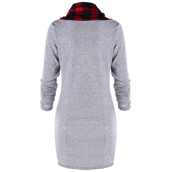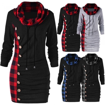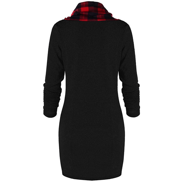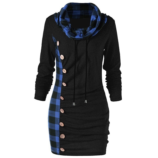 and distinctive design details like cowl neck,plaid spliced element and single-breasted design make