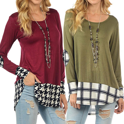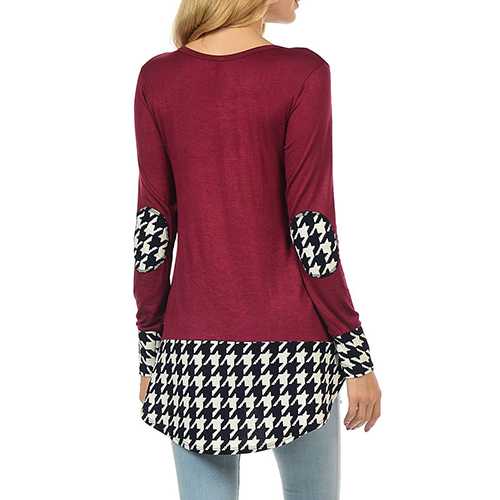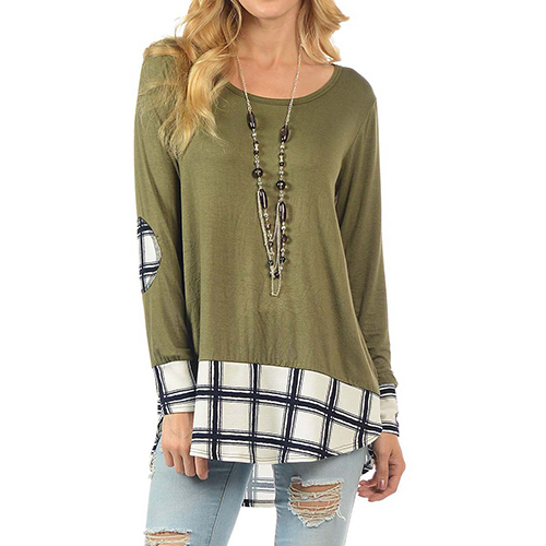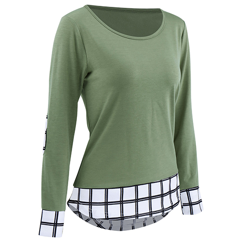 When wanna a cozy yet chic style,you can count on this t-shirt. Plaid spliced style,with long sleeve,round neck and a