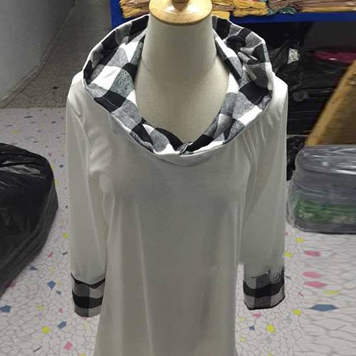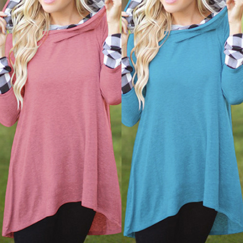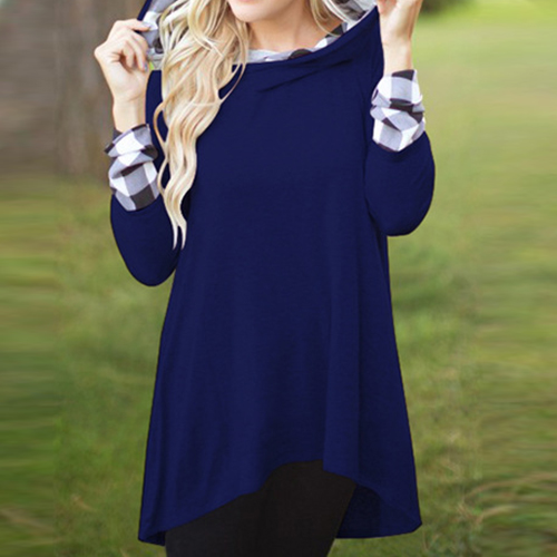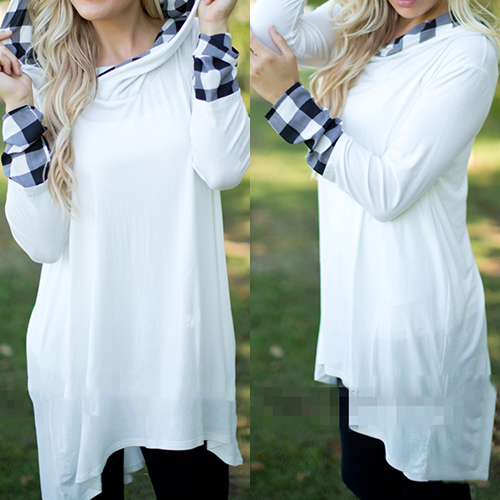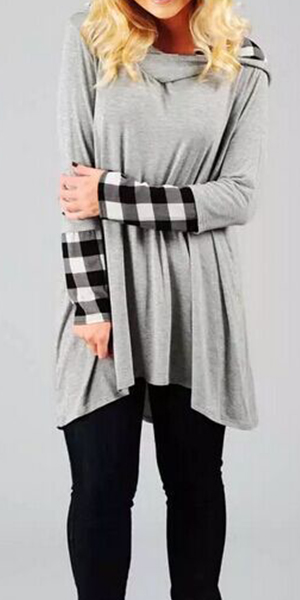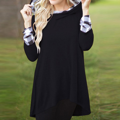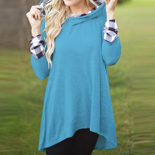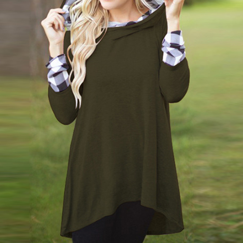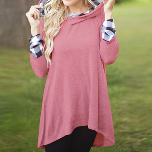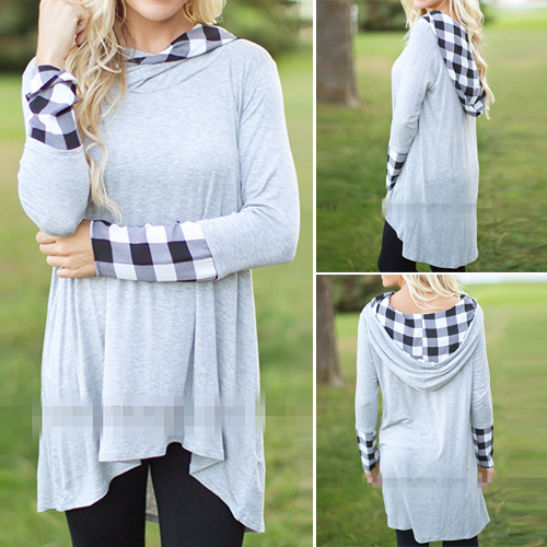 Gain a chic style and comfort feeling in this hoodie. Plaid spliced style,with long sleeve,