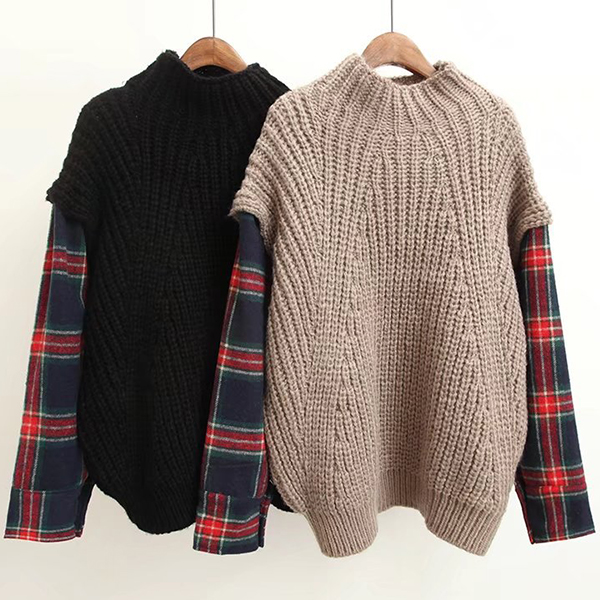 At your first glance,you may think it is a two-piece set,actually it is not. Plaid spliced long sleeve design is the highlight,