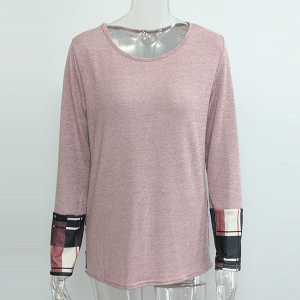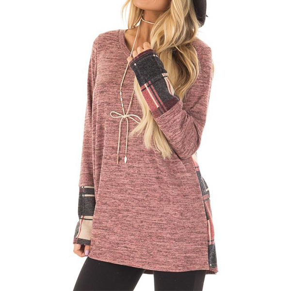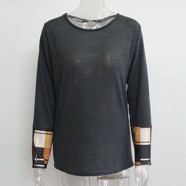 with long sleeve and round neck design,this t-shirt can give you an all-day comfort. And the plaid spliced and
