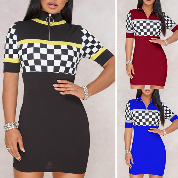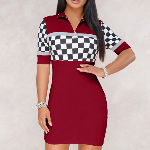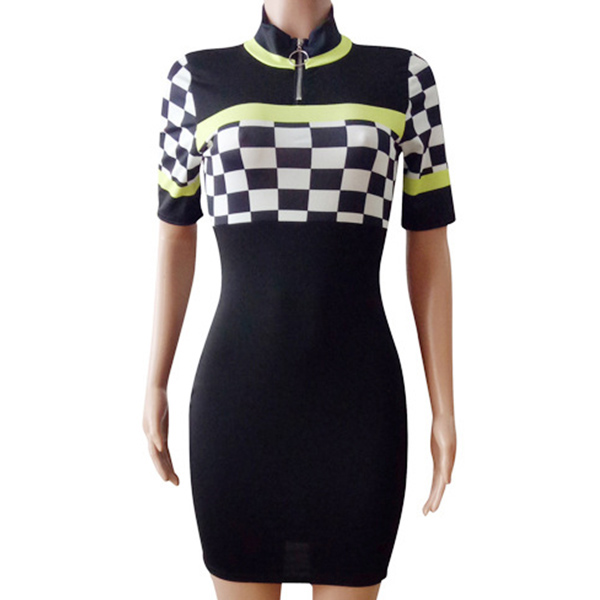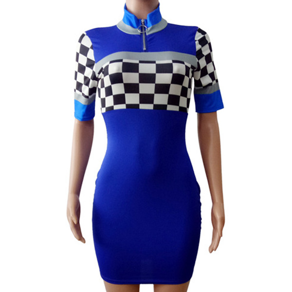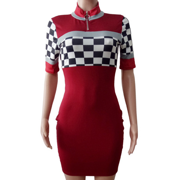 Designed with short sleeve,stand collar and a fit silhouette,this dress can demonstrate your slender figure.