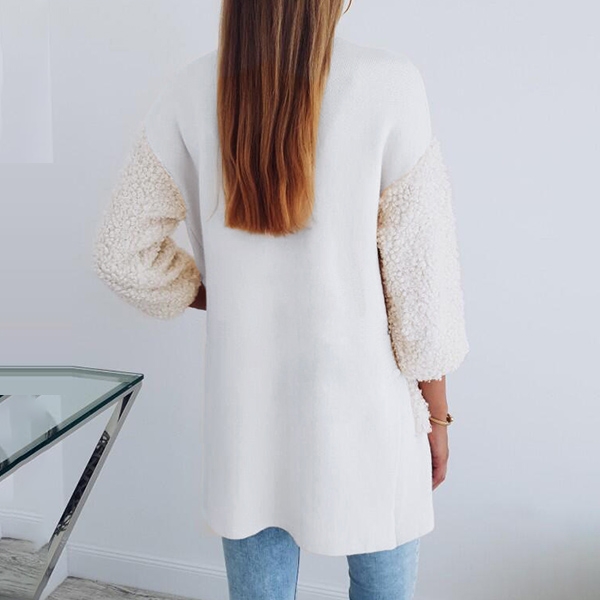 Give your wardrobe a seasonal update by adding this coat. The plush spliced long sleeve
