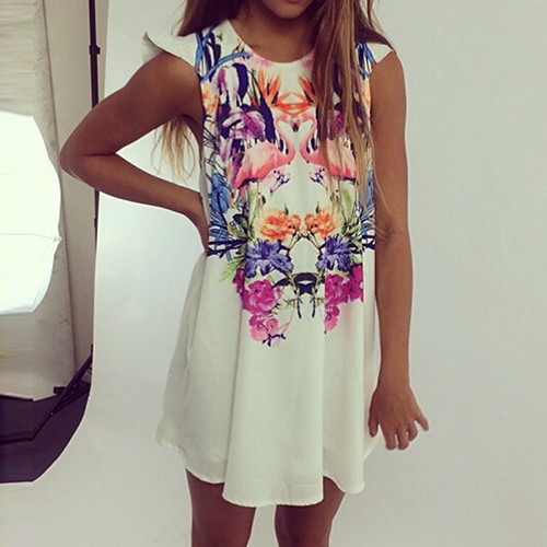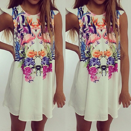 and eye-catching printed pattern,with cap sleeve,round neck and a loose silhouette,casual