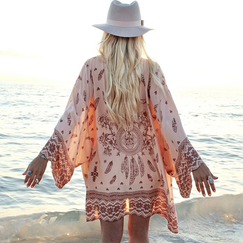 Fashion Printed Chiffon Sunscreen Cardigan Bikini Smock