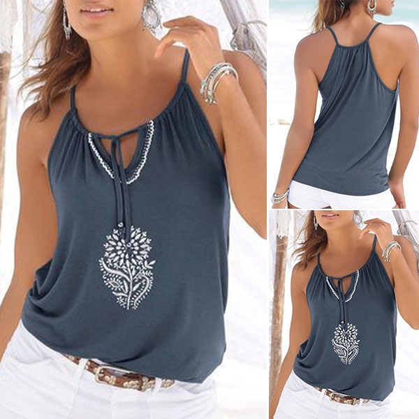 as exude your charming feminine appeal. Sling style,the lace-up v-neck and chic printed pattern