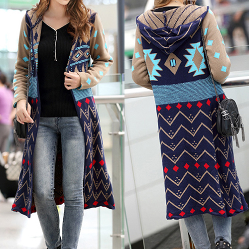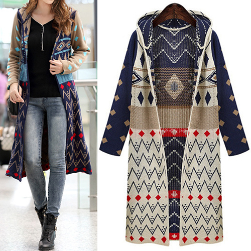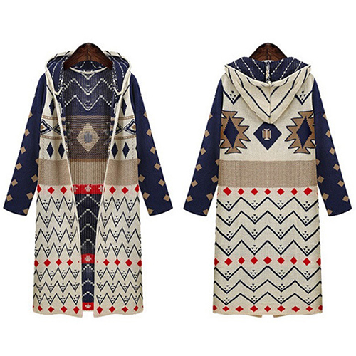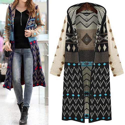 printed design, it is easy to draw people's attention. With hooded, long sleeve and open-front design,
