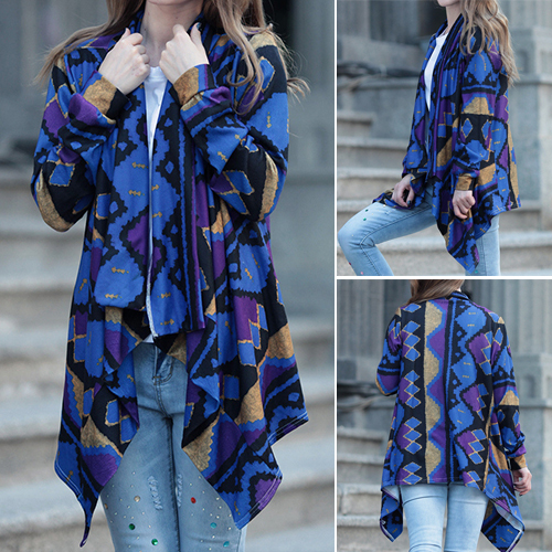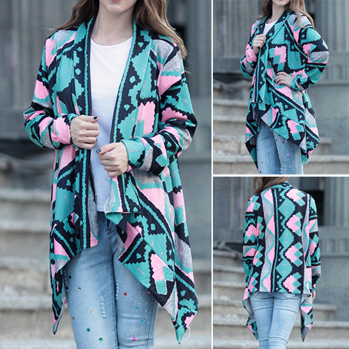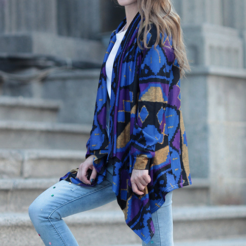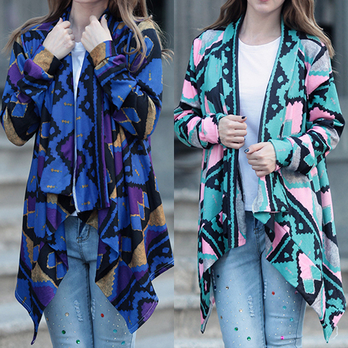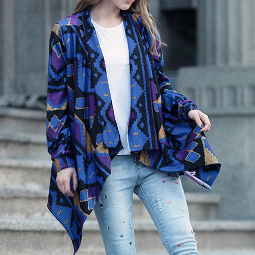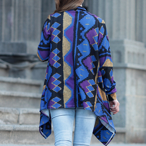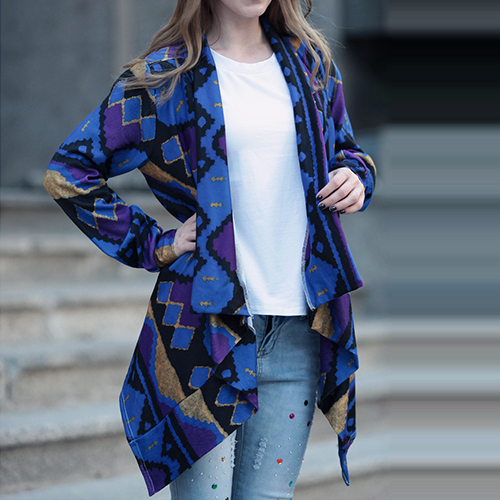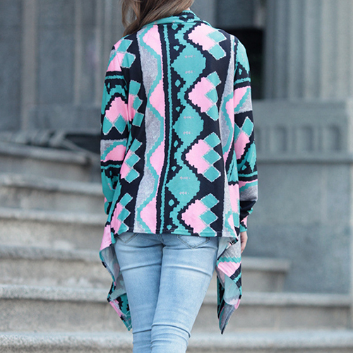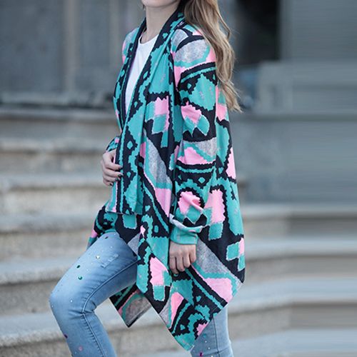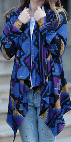 Open-front construction, boasting long sleeve, printed and irregular hemline design, this cardigan is decorated