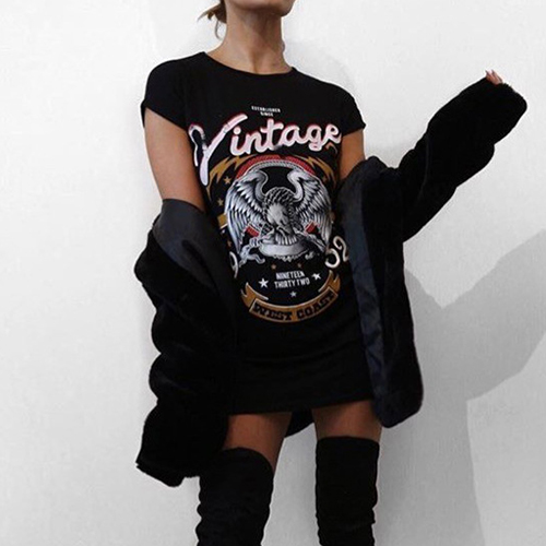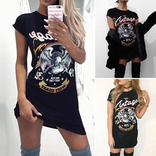 chic printed pattern,with short sleeve,round neck and cozy fabric,this t-shirt dress is your perfect companion on your casual days.