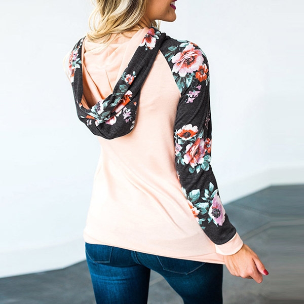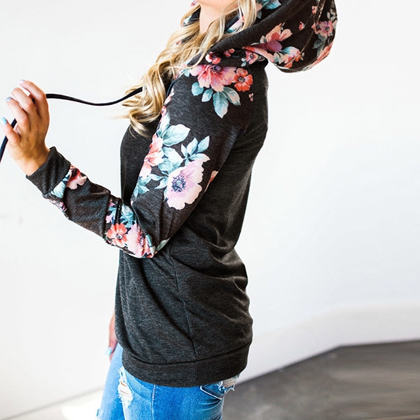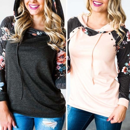 For a simple,casual and relaxed style,you can count on this hoodie. The printed spliced and keyhole