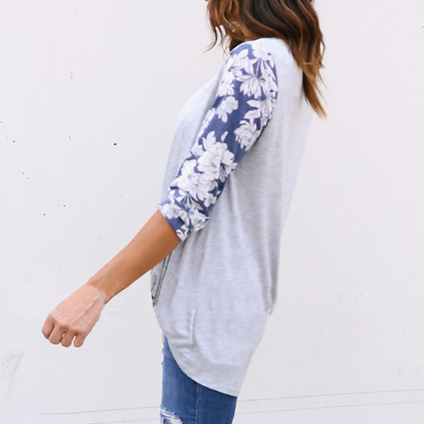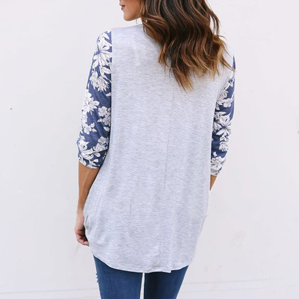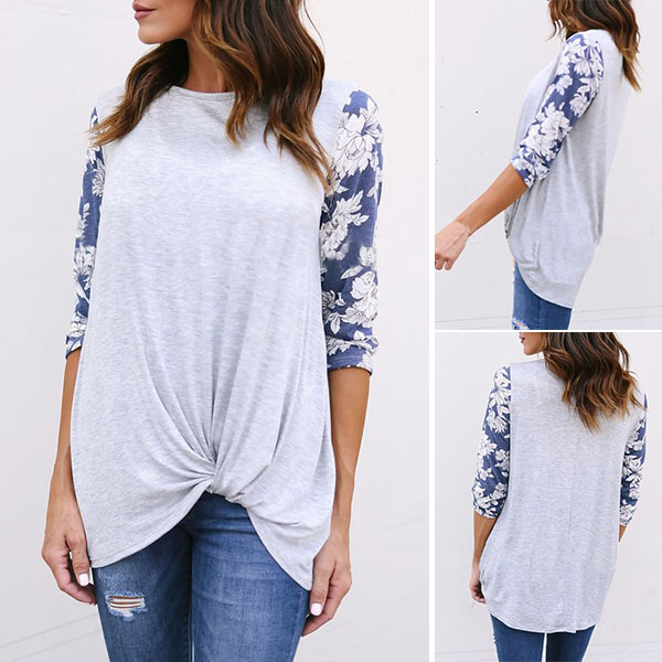 breathable fabric can offer you a comfortable day,while the printed spliced long sleeve and knotted hem