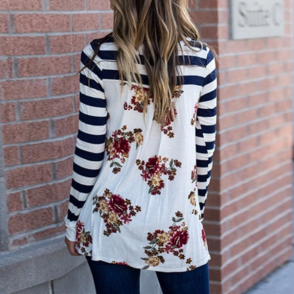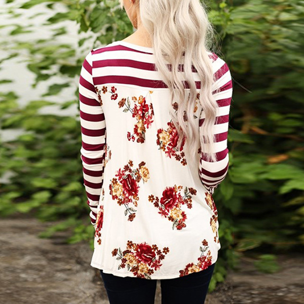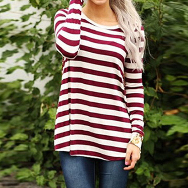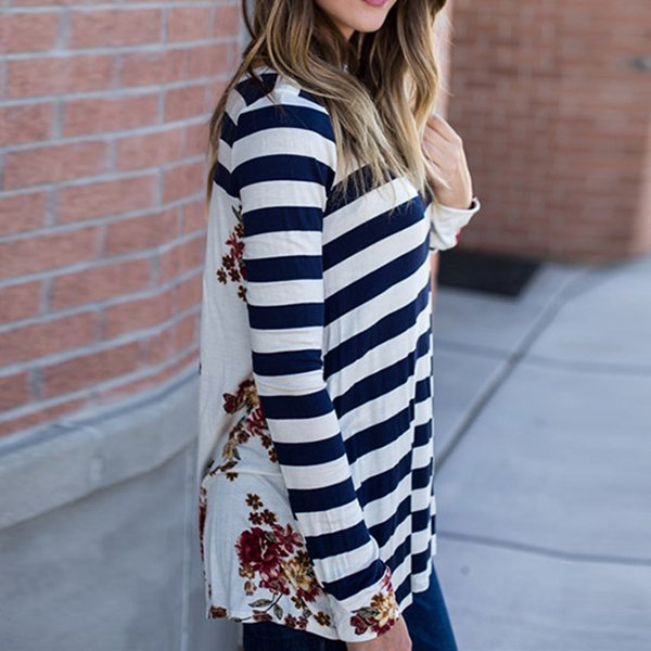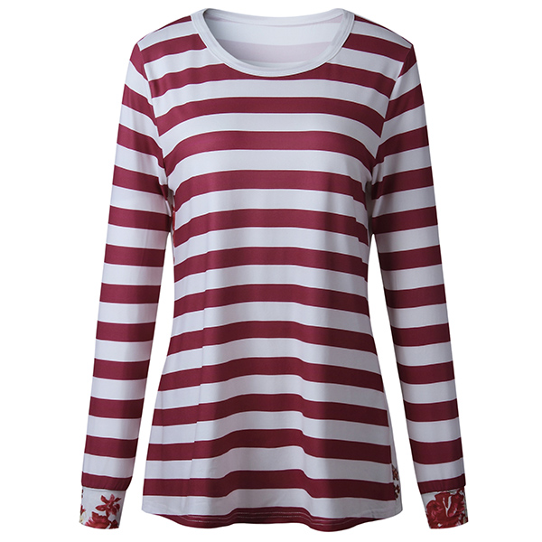 sleeve and round neck design,this t-shirt is sure to give you a comfortable day. Combining stripe and printed elements