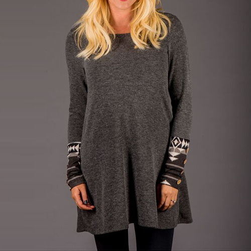 Crafted from soft and breathable fabric,with long sleeve and round neck design,this dress can give you