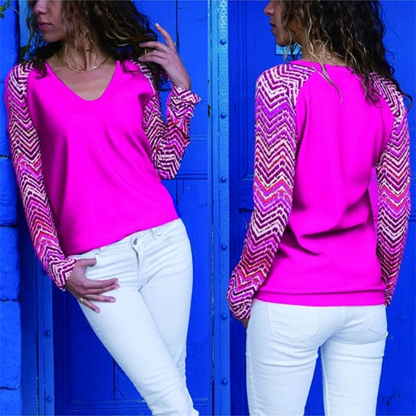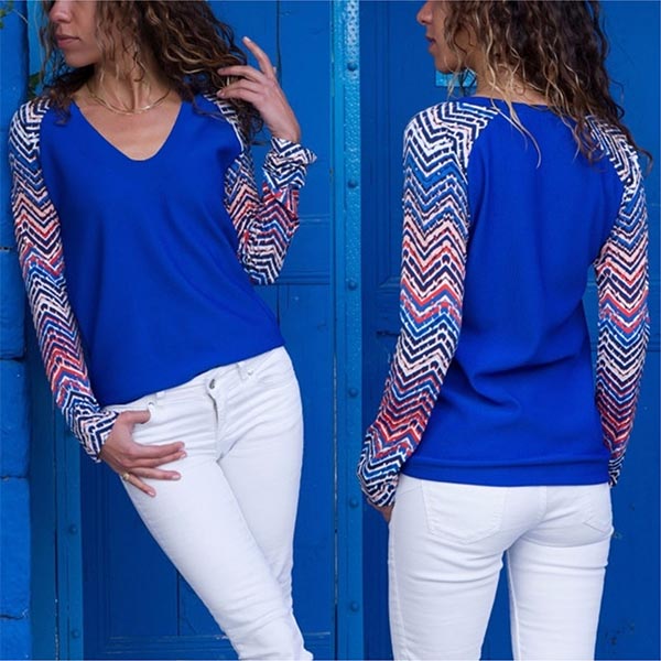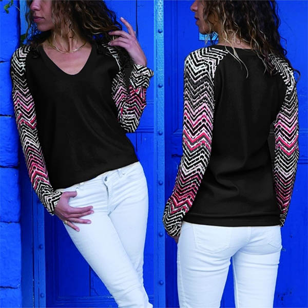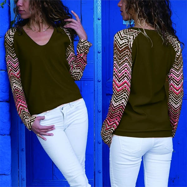 The printed spliced long sleeve design makes this piece look so attractive,while the soft and breathable