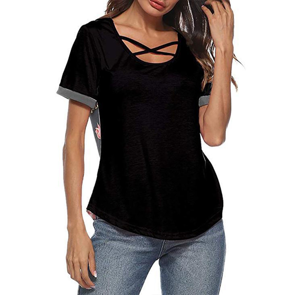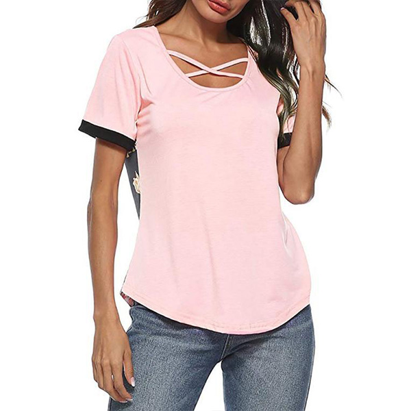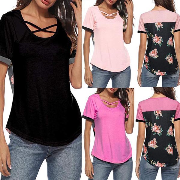 Moreover,the printed spliced and crossover design at the neckline part make this piece look more attractive.