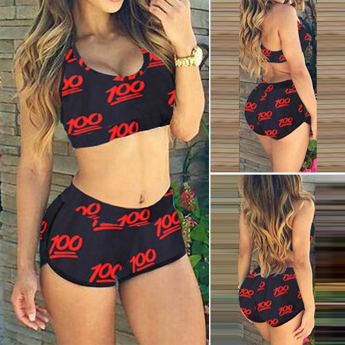 Boasting a chic and eye-catching number pattern, including a sleeveless crop tops and a shorts,this stylish