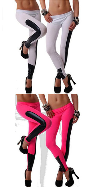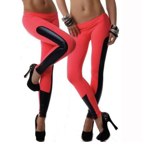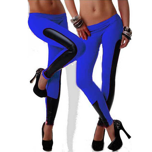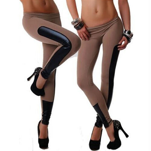 PU leather spliced style,crafted from super soft and stretch fabric,with an elastic waist,this leggings