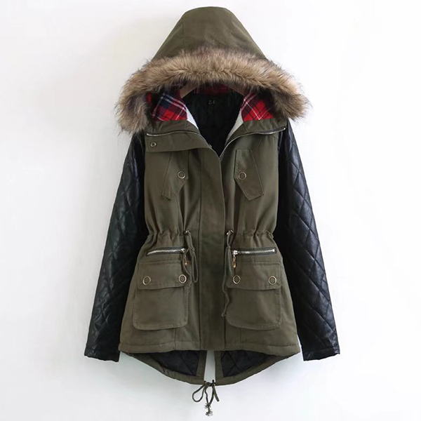 When the chilly winter hits,it is wise for you to invite this coat to your wardrobe ensemble. The PU leather spliced long