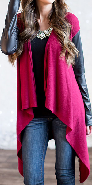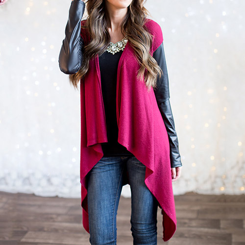 cardigan. This cardigan boasts PU spliced design that instantly uplifts your fashion taste.