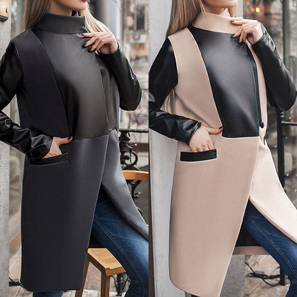 When the days get a little cold,it is a wise choice to invite this woolen coat to your wardrobe. PU leather spliced style,