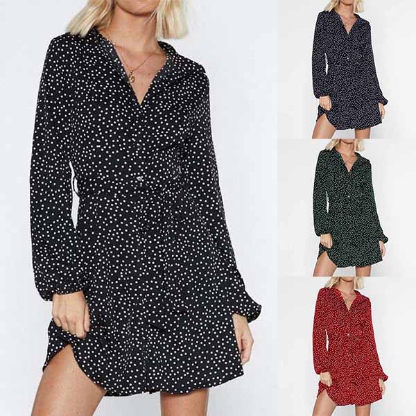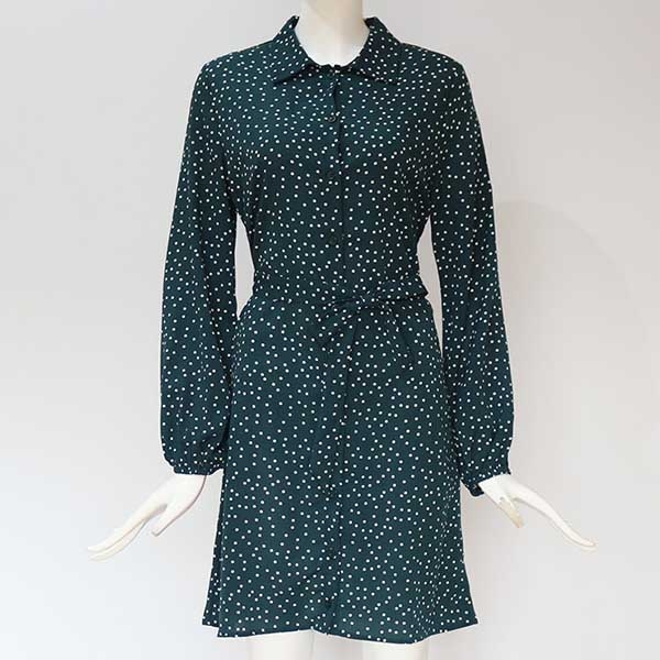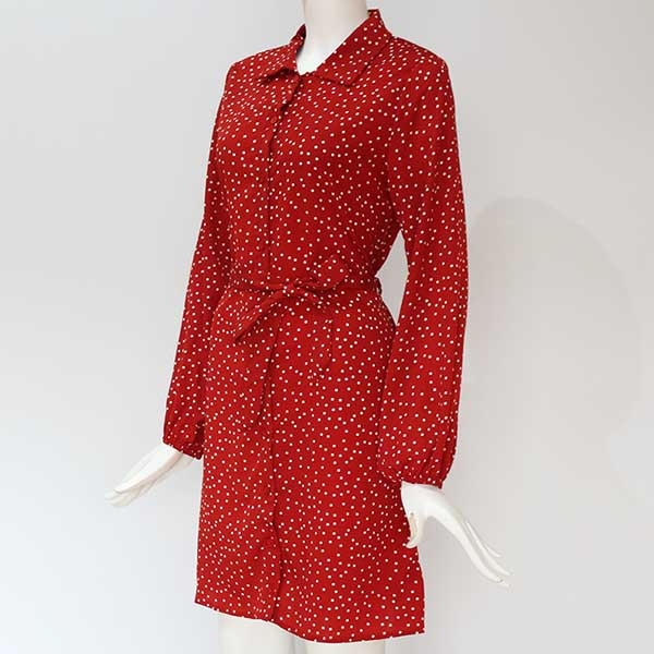 this shirt dress in your team. The dots printed details make it look so playful and attractive. Finished with