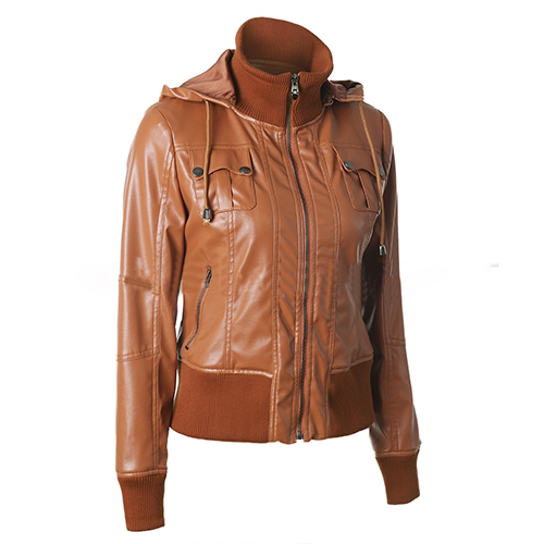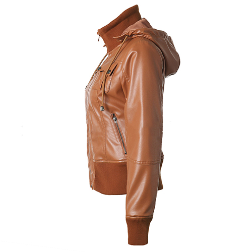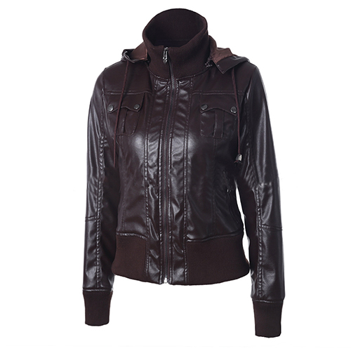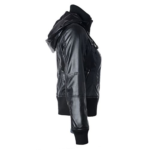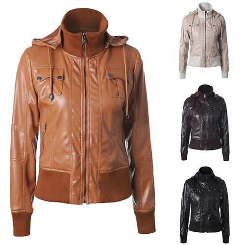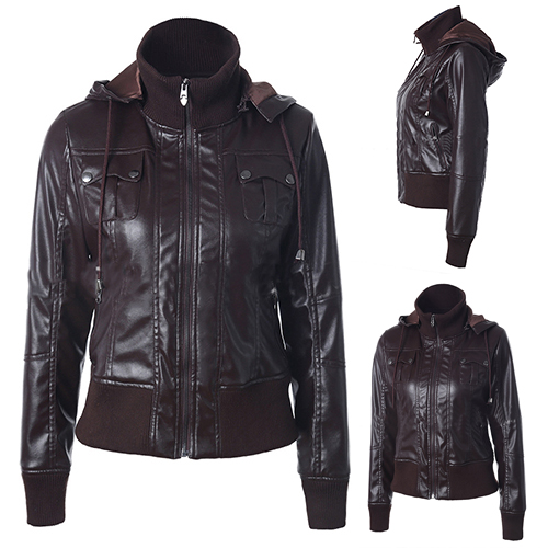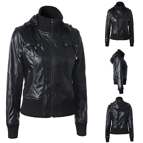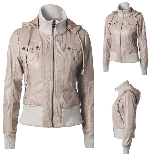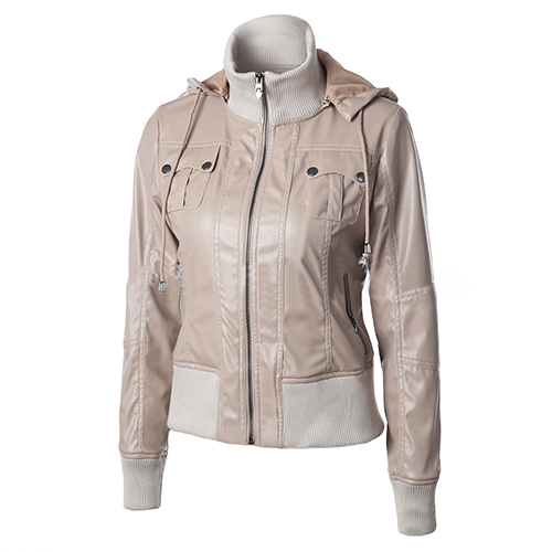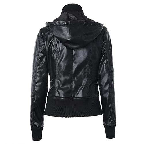 As a fashion and cool girl, a pu leather jacket is your fashion essential. Look this one, ribbed spliced style,