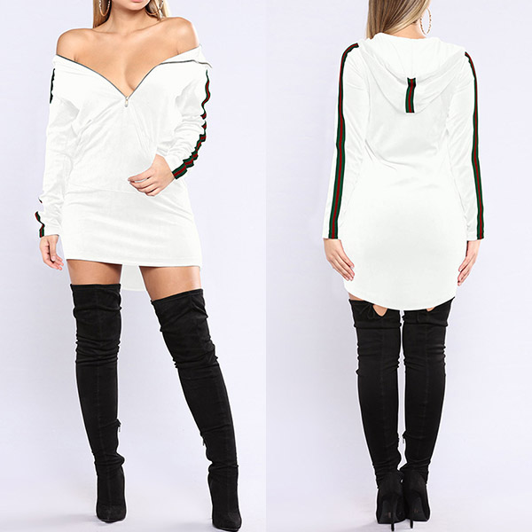It is finished with long sleeve,hooded silhouette and high-low hem,this dress can give you a cozy yet stylish style.