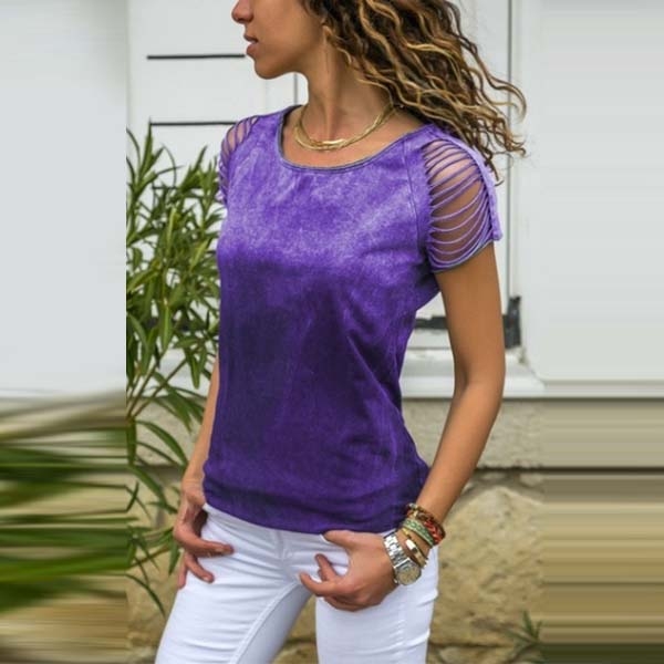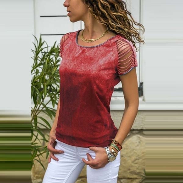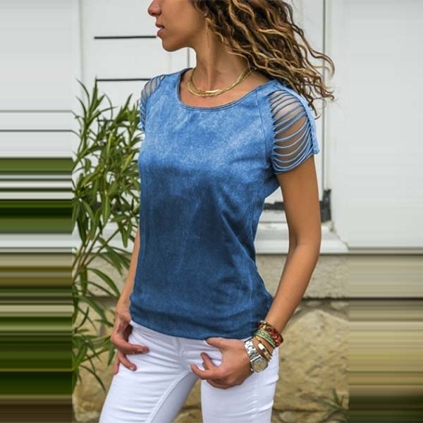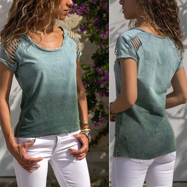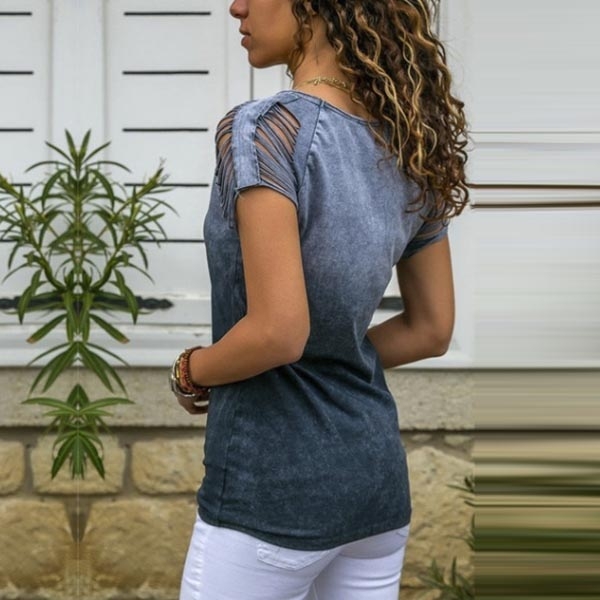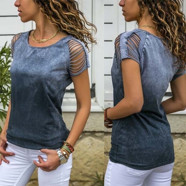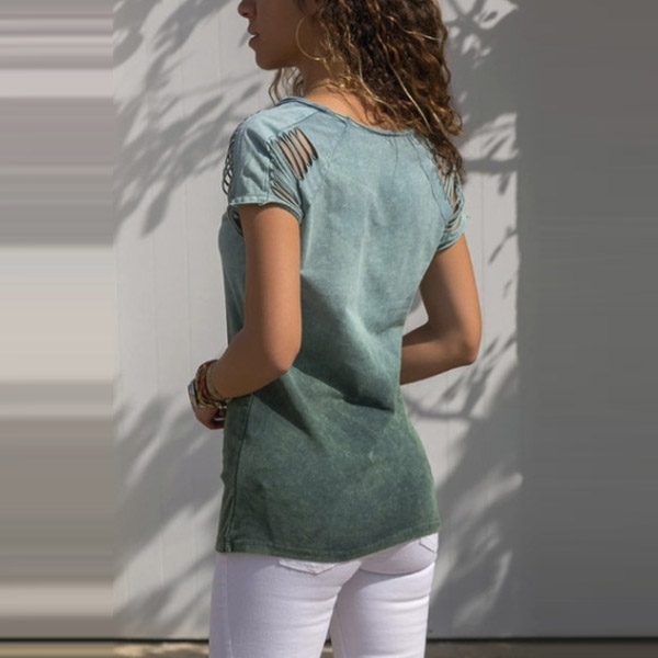 Update your casual wardrobe ensemble with this t-shirt! Its soft and breathable fabric can ensure you a comfortable day,the ripped details at
